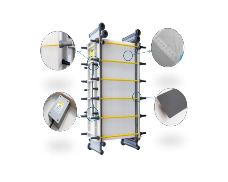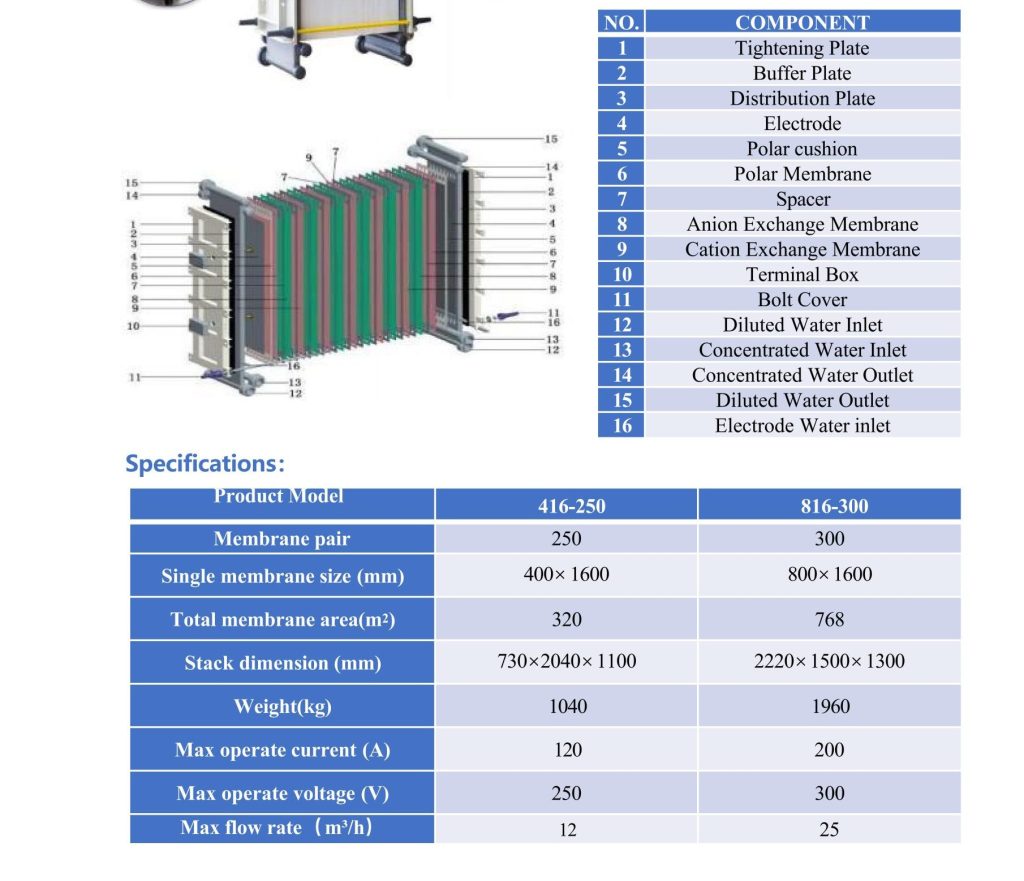 Membrane Stack For ED system Membrane stack is the core part of theED system. It mainly consists of : -AM membrane Anti-corrosion electrode Well-designed spacer Guide rods avoiding deformation
