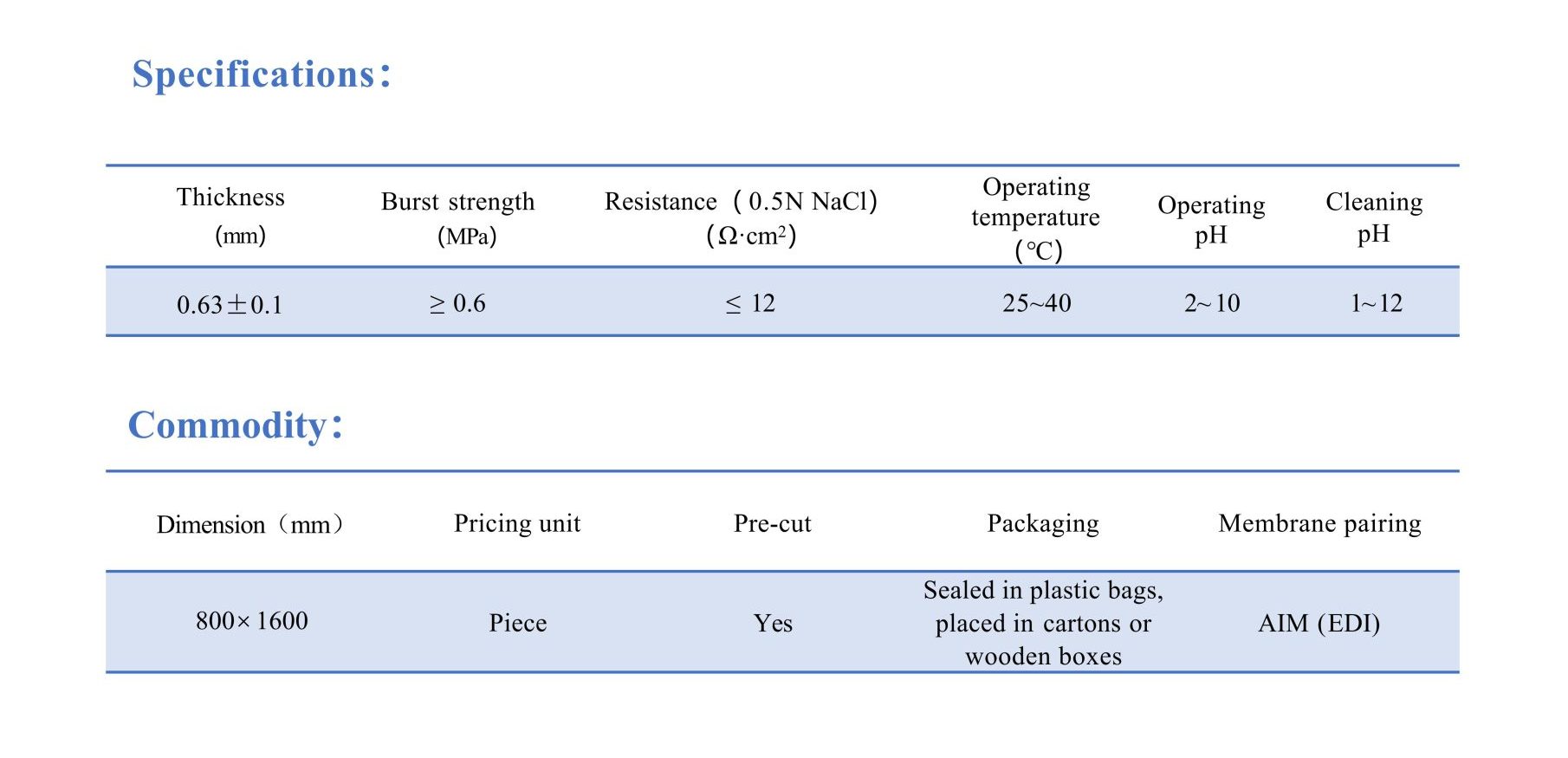 - Fully compatible with commonly available EDI modules in the market, making it suitable as a replacement membrane for maintenance, compatible with various types of spacers.