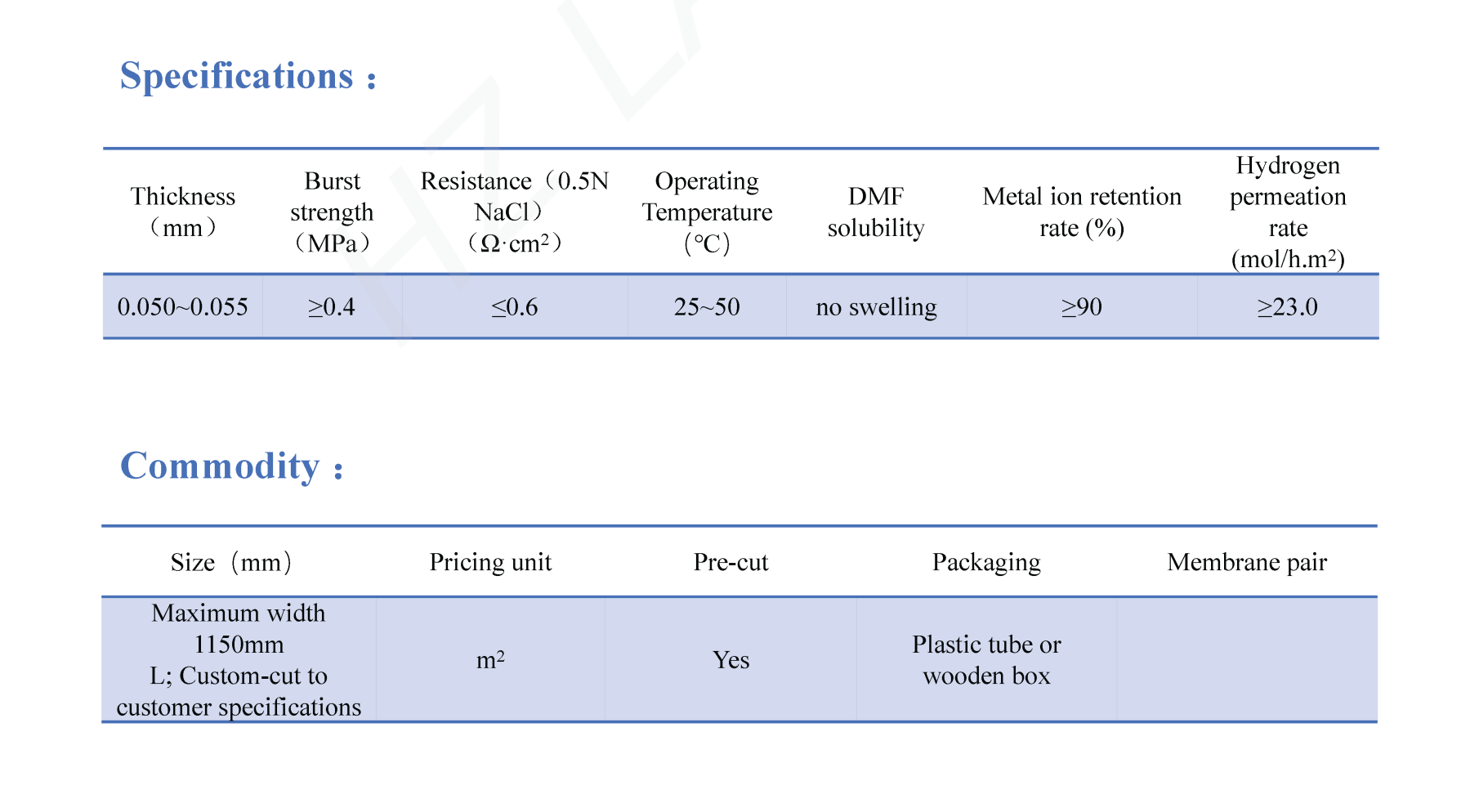 By modifying the substrate and polymer, the DM-1 (Product Model) membrane possesses advantages such as high-efficiency anion diffusion and selective permeability, high hydrogen permeation rate, high metal ion rejection, and high mechanical strength.