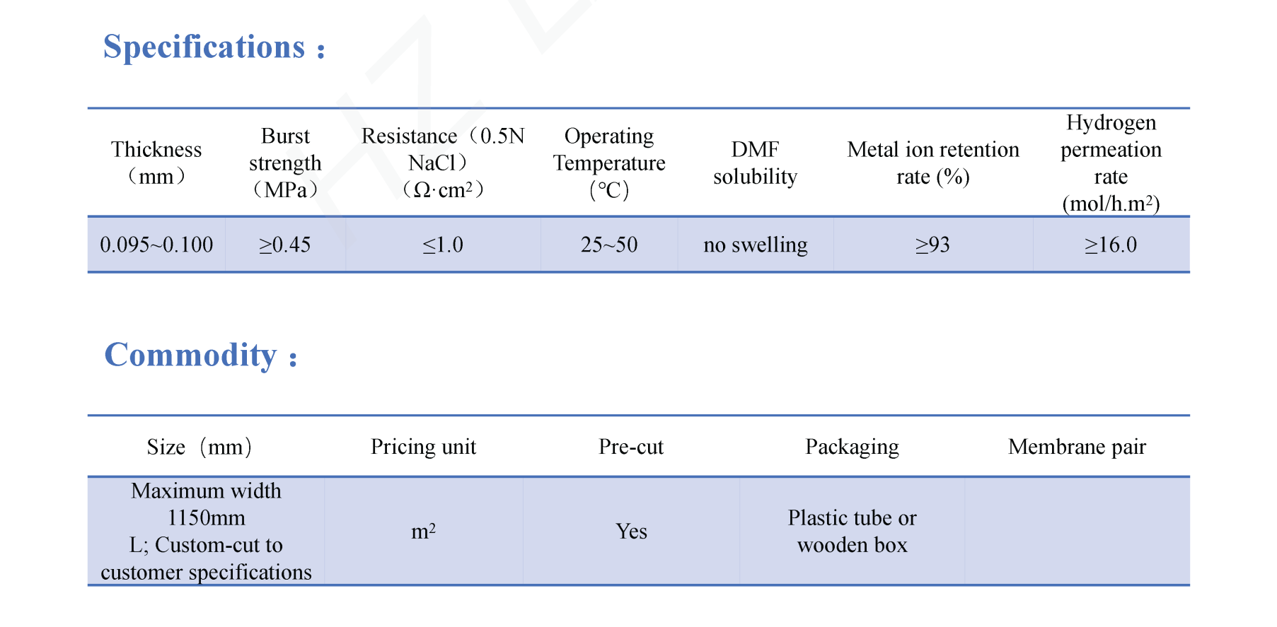 By changing the base material and polymer, the DM-2 (Product Model) membrane has the advantages of good high-efficiency anion diffusion and selective permeability, high metal ion retention rate, high hydrogen permeation rate, and high mechanical strength.